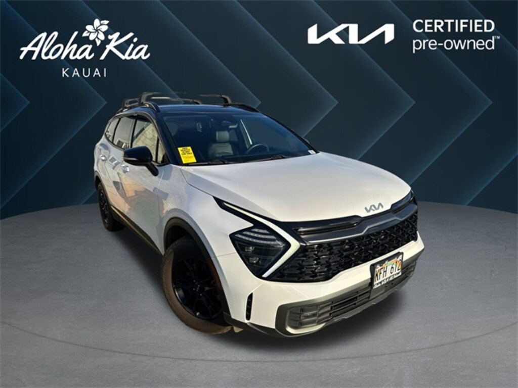 Certified. Glacier White Pearl/Ebony Black Roof 2024 Kia Sportage X-Pro AWD 8-Speed Automatic 4-Wheel Disc Brakes, 8 Speakers, ABS brakes, Air Conditioning, Alloy wheels, AM/FM radio: SiriusXM, Apple CarPlay & Android Auto, Auto High-beam Headlights, Automatic temperature control, Axle Ratio: 3.648, Brake assist, Bumpers: body-color, Cargo Cover, Cargo Mat w/Seatback Protection, Cargo Net Hybrid w/Audio, Carpeted Floor Mats, Compass, Cross Bars X-Line, Delay-off headlights, Driver door bin, Driver vanity mirror, Dual front impact airbags, Dual front side impact airbags, Ebony Black Roof, Electronic Stability Control, Emergency communication system, Four wheel independent suspension, Front anti-roll bar, Front Bucket Seats, Front Center Armrest, Front dual zone A/C, Front fog lights, Front reading lights, Fully automatic headlights, harman/kardon® Speakers, Heated door mirrors, Heated Front Bucket Seats, Heated front seats, Heated steering wheel, Illuminated entry, Leather Shift Knob, Leather steering wheel, Low tire pressure warning, Memory seat, Navigation System, Occupant sensing airbag, Outside temperature display, Overhead airbag, Overhead console, Panic alarm, Passenger door bin, Passenger vanity mirror, Power door mirrors, Power driver seat, Power Liftgate, Power moonroof, Power steering, Power windows, Premium Leatherette Seat Trim, Radio: AM/FM/HD Premium Audio System, Rain sensing wipers, Rear anti-roll bar, Rear reading lights, Rear seat center armrest, Rear side impact airbag, Rear window defroster, Rear window wiper, Remote keyless entry, Security system, Speed control, Speed-sensing steering, Split folding rear seat, Spoiler, Steering wheel mounted audio controls, Tachometer, Telescoping steering wheel, Tilt steering wheel, Traction control, Trip computer, Turn signal indicator mirrors, Variably intermittent wipers, Wheels: 17" Matte Black Alloy, X-Pro Two-Tone Roof Package. I4