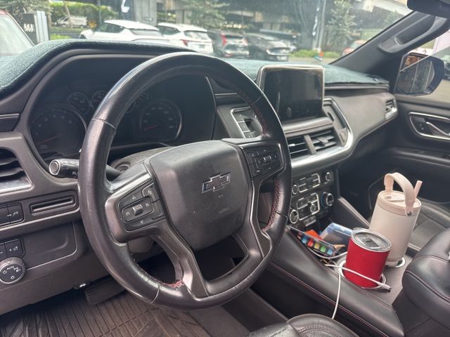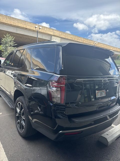 Black 2021 Chevrolet Tahoe RST 4WD 10-Speed Automatic with Overdrive EcoTec3 5.3L V8 4WD, Jet Black/Victory Red Leather, 10-Way Power Driver & Passenger Seat Adjusters, 1st & 2nd Row Color-Keyed Carpeted Floor Mats, 2 USB Data Ports, 3.23 Rear Axle Ratio, 3rd row seats: split-bench, 4-Wheel Disc Brakes, 9 Speakers, ABS brakes, Air Conditioning, Alloy wheels, AM/FM radio: SiriusXM with 360L, Apple CarPlay/Android Auto, Auto High-beam Headlights, Auto-Dimming Inside Rear-View Mirror, Auto-dimming Rear-View mirror, Automatic temperature control, Bose 9-Speaker Stereo Audio System Feature, Brake assist, Bright Front & Rear Door Sill Plates, Bumpers: body-color, Color-Keyed Carpeting Floor Covering, Compass, Delay-off headlights, Driver & Front Outboard Passenger Airbags, Driver door bin, Driver vanity mirror, Dual front impact airbags, Dual front side impact airbags, Electronic Stability Control, Emergency communication system: OnStar and Chevrolet connected services capable, Floor Console w/Storage Area, Four wheel independent suspension, Front anti-roll bar, Front Bucket Seats, Front Center Armrest, Front dual zone A/C, Front High-Back Reclining Bucket Seats, Front reading lights, Fully automatic headlights, Garage door transmitter, Hands-Free Rear Power Programmable Liftgate, HD Radio, Heated door mirrors, Heated Driver & Front Passenger Seats, Heated front seats, Illuminated entry, Infotainment Display, Leather steering wheel, Leather-Wrapped Steering Wheel, LED Daytime Running Lamps, License Plate Front Mounting Package, Low tire pressure warning, Memory seat, Memory Settings for Driver, Not Equipped w/Automatic Stop/Start, Not Equipped w/Steering Column Lock, Not Equipped w/Wireless Charging, Occupant sensing airbag, Outside temperature display, Overhead airbag, Overhead console, Panic alarm, Passenger door bin, Passenger vanity mirror, Perforated Leather Seat Trim, Power door mirrors, Power driver seat, Power Liftgate, Power passenger seat, Power steering, Power windows, Preferred Equipment Group 1SP, Premium audio system: Chevrolet Infotainment 3, Premium Smooth Ride Suspension, Radio: Chevrolet Infotainment 3 Plus System, Rain sensing wipers, Rear air conditioning, Rear anti-roll bar, Rear reading lights, Rear seat center armrest, Rear window defroster, Rear window wiper, Remote keyless entry, Remote Start, Roof rack: rails only, Security system, Set of 4 Wheel Locks (LPO), SiriusXM Radio w/360L, Speed control, Speed-sensing steering, Split folding rear seat, Spoiler, Steering wheel mounted audio controls, Tachometer, Telescoping steering wheel, Tilt steering wheel, Traction control, Trip computer, Universal Home Remote, Variably intermittent wipers, Voltmeter, Wheels: 22" x 9" Bright Machined, Backup Camera / Reverse Camera / Rear View Camera, 4WD, Jet Black/Victory Red Leather, 10-Way Power Driver & Passenger Seat Adjusters, 1st & 2nd Row Color-Keyed Carpeted Floor Mats, 2 USB Data Ports, 3.23 Rear Axle Ratio, 3rd row seats: split-bench, 4-Wheel Disc Brakes, 9 Speakers, ABS brakes, Air Conditioning, Alloy wheels, AM/FM radio: SiriusXM with 360L, Apple CarPlay/Android Auto, Auto High-beam Headlights, Auto-Dimming Inside Rear-View Mirror, Auto-dimming Rear-View mirror, Automatic temperature control, Bose 9-Speaker Stereo Audio System Feature, Brake assist, Bright Front & Rear Door Sill Plates, Bumpers: body-color, Color-Keyed Carpeting Floor Covering, Compass, Delay-off headlights, Driver & Front Outboard Passenger Airbags, Driver door bin, Driver vanity mirror, Dual front impact airbags, Dual front side impact airbags, Electronic Stability Control, Emergency communication system: OnStar and Chevrolet connected services capable, Floor Console w/Storage Area, Four wheel independent suspension, Front anti-roll bar, Front Bucket Seats, Front Center Armrest, Front dual zone A/C, Front High-Back Reclining Bucket Seats, Front reading lights, Fully automatic headlights, Garage door transmitter, Hands-Free Rear Power Programmable
