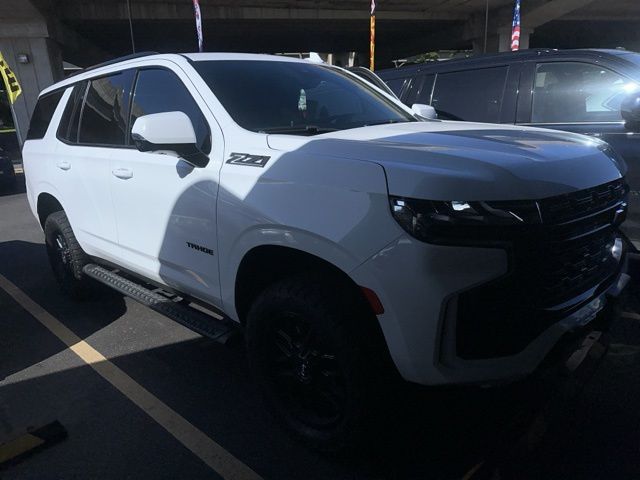 Summit White 2023 Chevrolet Tahoe Z71 4WD 10-Speed Automatic with Overdrive EcoTec3 5.3L V8 4WD, Black Leather, 10-Way Power Driver & Passenger Seat Adjusters, 1st & 2nd Row Color-Keyed Carpeted Floor Mats, 2-Speed Active Electronic AutoTrac Transfer Case, 2nd Row Pwr Release 60/40 Split-Folding Bench Seat, 3.23 Rear Axle Ratio, 3rd Row 60/40 Power-Folding Split-Bench Seat, 3rd row seats: split-bench, 4-Wheel Disc Brakes, 9 Speakers, ABS brakes, Air Conditioning, Alloy wheels, AM/FM radio: SiriusXM with 360L, Apple CarPlay/Android Auto, Auto High-beam Headlights, Auto-Dimming Inside Rear-View Mirror, Auto-dimming Rear-View mirror, Automatic temperature control, Black Tubular Assist Steps, Bose 9-Speaker Stereo Audio System Feature, Brake assist, Bright Front & Rear Door Sill Plates, Bumpers: body-color, Color-Keyed Carpeting Floor Covering, Compass, Delay-off headlights, Driver & Front Outboard Passenger Airbags, Driver Alert Package, Driver door bin, Driver vanity mirror, Dual front impact airbags, Dual front side impact airbags, Dual-Pane Power Panoramic Sunroof, Electronic Stability Control, Emergency communication system: OnStar and Chevrolet connected services capable, Enhanced Driver Information Center, Floor Console w/Storage Area, Four wheel independent suspension, Front anti-roll bar, Front Bucket Seats, Front Center Armrest, Front dual zone A/C, Front High-Approach Angle Fascia, Front High-Back Reclining Bucket Seats, Front reading lights, Fully automatic headlights, Garage door transmitter, Hands-Free Rear Power Programmable Liftgate, HD Surround Vision, Heated 2nd Row Outboard Seats, Heated door mirrors, Heated Driver & Front Passenger Seats, Heated front seats, Heated Steering Wheel, Hill Descent Control, Illuminated entry, Infotainment Display, Lane Change Alert w/Side Blind Zone Alert, Leather-Appointed Seat Trim, LED Daytime Running Lamps, License Plate Front Mounting Package, Low tire pressure warning, Luxury Package, Memory seat, Memory Settings, Memory Settings for Driver, Navigation System, Occupant sensing airbag, Outside Heated Power-Adjustable Mirrors, Outside temperature display, Overhead airbag, Overhead console, Panic alarm, Passenger door bin, Passenger vanity mirror, Power door mirrors, Power driver seat, Power Liftgate, Power passenger seat, Power Release 2nd Row Bucket Seats, Power steering, Power Tilt & Telescopic Steering Column, Power windows, Preferred Equipment Group 2Z7, Premium audio system: Chevrolet Infotainment 3 Premium, Premium Smooth Ride Suspension, Radio: Chevrolet Infotainment 3 Premium System, Rain sensing wipers, Rear air conditioning, Rear anti-roll bar, Rear Cross Traffic Alert, Rear Pedestrian Alert, Rear reading lights, Rear seat center armrest, Rear window defroster, Rear window wiper, Red Horizontal-Mounted Recovery Hooks, Remote keyless entry, Remote Start, Roof rack: rails only, Security system, SiriusXM Radio w/360L, Speed control, Speed-sensing steering, Split folding rear seat, Spoiler, Steering wheel mounted audio controls, Tachometer, Telescoping steering wheel, Tilt steering wheel, Traction control, Trip computer, Universal Home Remote, Variably intermittent wipers, Voltmeter, Wheels: 20" x 9" Machined Aluminum, Wireless Charging, Wrapped Steering Wheel, 4WD, Black Leather.