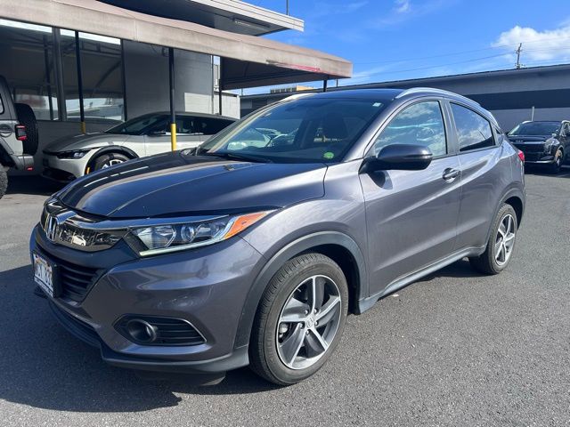 Gray 2021 Honda HR-V EX FWD CVT 1.8L I4 SOHC 16V i-VTEC Traditional Certified, 17" Machine-Finished Alloy Wheels, 4-Wheel Disc Brakes, 6 Speakers, ABS brakes, Air Conditioning, Alloy wheels, AM/FM radio: SiriusXM, Apple CarPlay/Android Auto, Auto High-beam Headlights, Automatic temperature control, Brake assist, Bumpers: body-color, Cloth Seat Trim, Delay-off headlights, Driver door bin, Driver vanity mirror, Dual front impact airbags, Dual front side impact airbags, Electronic Stability Control, Emergency communication system, Exterior Parking Camera Rear, Forward collision: Collision Mitigation Braking System (CMBS) + FCW mitigation, Front anti-roll bar, Front Bucket Seats, Front Center Armrest, Front fog lights, Front reading lights, Front wheel independent suspension, Fully automatic headlights, Heated door mirrors, Heated Front Bucket Seats, Heated front seats, Illuminated entry, Low tire pressure warning, Occupant sensing airbag, Outside temperature display, Overhead airbag, Panic alarm, Passenger door bin, Passenger vanity mirror, Power door mirrors, Power moonroof, Power steering, Power windows, Radio data system, Radio: AM/FM/HD Audio System (180-Watt), Rear window defroster, Rear window wiper, Remote keyless entry, Roof rack: rails only, Security system, Speed control, Speed-sensing steering, Split folding rear seat, Spoiler, Steering wheel mounted audio controls, Tachometer, Telescoping steering wheel, Tilt steering wheel, Traction control, Trip computer, Turn signal indicator mirrors, Variably intermittent wipers, 5.436 Axle Ratio, Backup Camera / Reverse Camera / Rear View Camera, 17" Machine-Finished Alloy Wheels, 4-Wheel Disc Brakes, 6 Speakers, ABS brakes, Air Conditioning, Alloy wheels, AM/FM radio: SiriusXM, Apple CarPlay/Android Auto, Auto High-beam Headlights, Automatic temperature control, Brake assist, Bumpers: body-color, Cloth Seat Trim, Delay-off headlights, Driver door bin, Driver vanity mirror, Dual front impact airbags, Dual front side impact airbags, Electronic Stability Control, Emergency communication system, Exterior Parking Camera Rear, Forward collision: Collision Mitigation Braking System (CMBS) + FCW mitigation, Front anti-roll bar, Front Bucket Seats, Front Center Armrest, Front fog lights, Front reading lights, Front wheel independent suspension, Fully automatic headlights, Heated door mirrors, Heated Front Bucket Seats, Heated front seats, Illuminated entry, Low tire pressure warning, Occupant sensing airbag, Outside temperature display, Overhead airbag, Panic alarm, Passenger door bin, Passenger vanity mirror, Power door mirrors, Power moonroof, Power steering, Power windows, Radio data system, Radio: AM/FM/HD Audio System (180-Watt), Rear window defroster, Rear window wiper, Remote keyless entry, Roof rack: rails only, Security system, Speed control, Speed-sensing steering, Split folding rear seat, Spoiler, Steering wheel mounted audio controls, Tachometer, Telescoping steering wheel, Tilt steering wheel, Traction control, Trip computer, Turn signal indicator mirrors, Variably intermittent wipers.