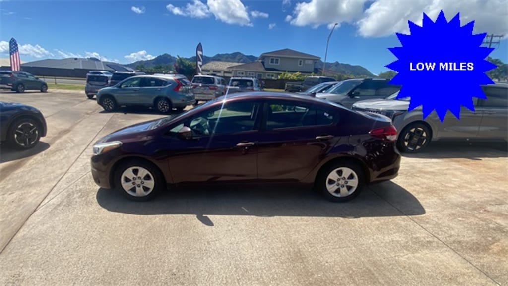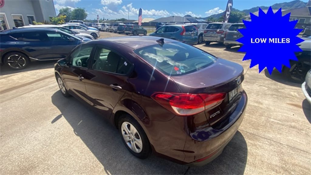 Garnet Red 2017 Kia Forte LX FWD 6-Speed Automatic 4 Speakers, 4-Wheel Disc Brakes, ABS brakes, Air Conditioning, AM/FM radio: SiriusXM, AM/FM/CD/MP3 Audio System, Brake assist, Bumpers: body-color, CD player, Cloth Seat Trim, Delay-off headlights, Driver door bin, Driver vanity mirror, Dual front impact airbags, Dual front side impact airbags, Electronic Stability Control, Front anti-roll bar, Front Bucket Seats, Front Center Armrest, Front wheel independent suspension, Heated door mirrors, Illuminated entry, Low tire pressure warning, Occupant sensing airbag, Outside temperature display, Overhead airbag, Panic alarm, Passenger door bin, Passenger vanity mirror, Power door mirrors, Power steering, Power windows, Rear window defroster, Remote keyless entry, Security system, Split folding rear seat, Steering wheel mounted audio controls, Tachometer, Telescoping steering wheel, Tilt steering wheel, Traction control, Trip computer, Variably intermittent wipers, Wheels: 15" x 6.0" Steel w/Wheel Covers. 2.0L I4 DOHC Dual CVVT