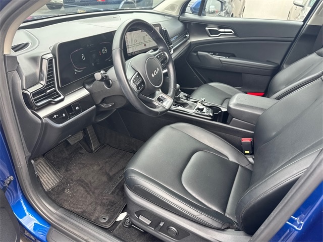 Certified. Sapphire Blue 2023 Kia Sportage EX FWD 8-Speed Automatic I4 4-Wheel Disc Brakes, 6 Speakers, ABS brakes, Air Conditioning, Alloy wheels, AM/FM radio: SiriusXM, Apple CarPlay & Android Auto, Auto High-beam Headlights, Automatic temperature control, Axle Ratio: 3.648, Brake assist, Bumpers: body-color, Cargo Cover, Carpeted Floor Mats, Compass, Delay-off headlights, Driver door bin, Driver vanity mirror, Dual front impact airbags, Dual front side impact airbags, Electronic Stability Control, Emergency communication system, Four wheel independent suspension, Front anti-roll bar, Front Bucket Seats, Front Center Armrest, Front dual zone A/C, Fully automatic headlights, Heated door mirrors, Heated Front Bucket Seats, Heated front seats, Illuminated entry, Leather Shift Knob, Leather steering wheel, Leatherette Seat Trim, Low tire pressure warning, Navigation System, Occupant sensing airbag, Outside temperature display, Overhead airbag, Overhead console, Panic alarm, Passenger door bin, Passenger vanity mirror, Power door mirrors, Power driver seat, Power steering, Power windows, Radio: AM/FM/HD Audio System, Rain sensing wipers, Rear anti-roll bar, Rear seat center armrest, Rear window defroster, Rear window wiper, Remote keyless entry, Security system, Speed control, Speed-sensing steering, Split folding rear seat, Spoiler, Steering wheel mounted audio controls, Tachometer, Telescoping steering wheel, Tilt steering wheel, Traction control, Trip computer, Turn signal indicator mirrors, Variably intermittent wipers, Wheels: 18" Machine Finish Alloy.